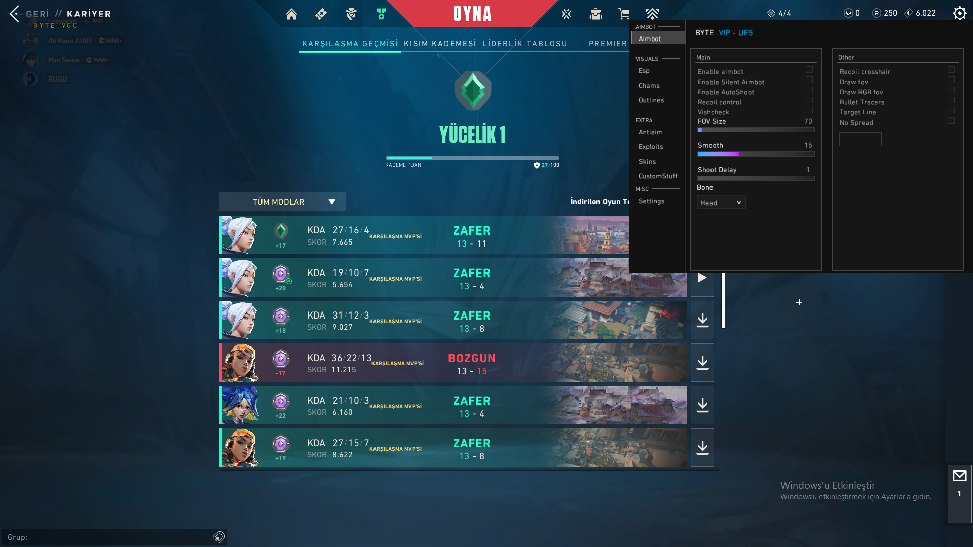 • Enemy Chams (Color/RGB/Fresnel) • Skeleton/Head/Distance ESP • Weapon/Spike/Agent Icons • Health/Armor Bars • Riot Name ESP • Dropped Traps • Weapon State